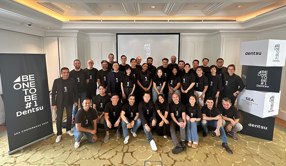 電通のSEA(South East Asia)のカンファレンス。グローバルを通して、国を超えて連携を目指している。前列左から3番目が新保泰史氏。