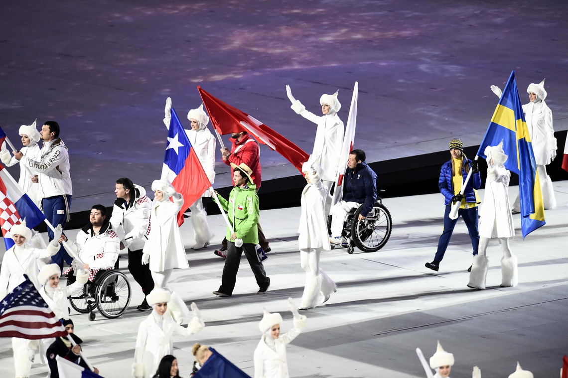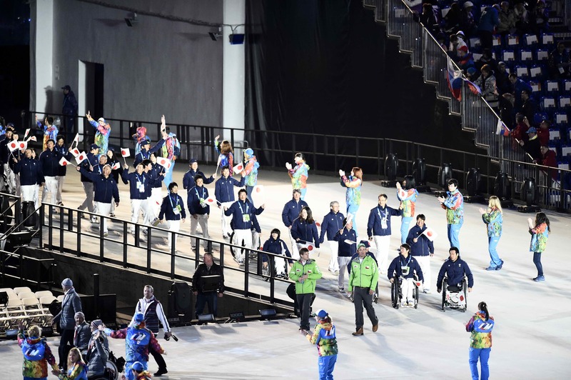 フィシュト・オリンピックスタジアムでは閉会式が行われ、参加45カ国の旗手が入場行進した。日本はアルペンスキー男子で二つの金メダルを獲得した狩野亮選手が務め、観客から大きな声援を受けた。日本は、金3、銀1、銅2の計6個のメダルを獲得。目標の10個には届かなかったが、金メダル数は海外の冬季大会では最多タイだった。国別の獲得数は、地元ロシアが過去最多の金メダル30、銀メダル28、銅メダル22の計80個で1位。