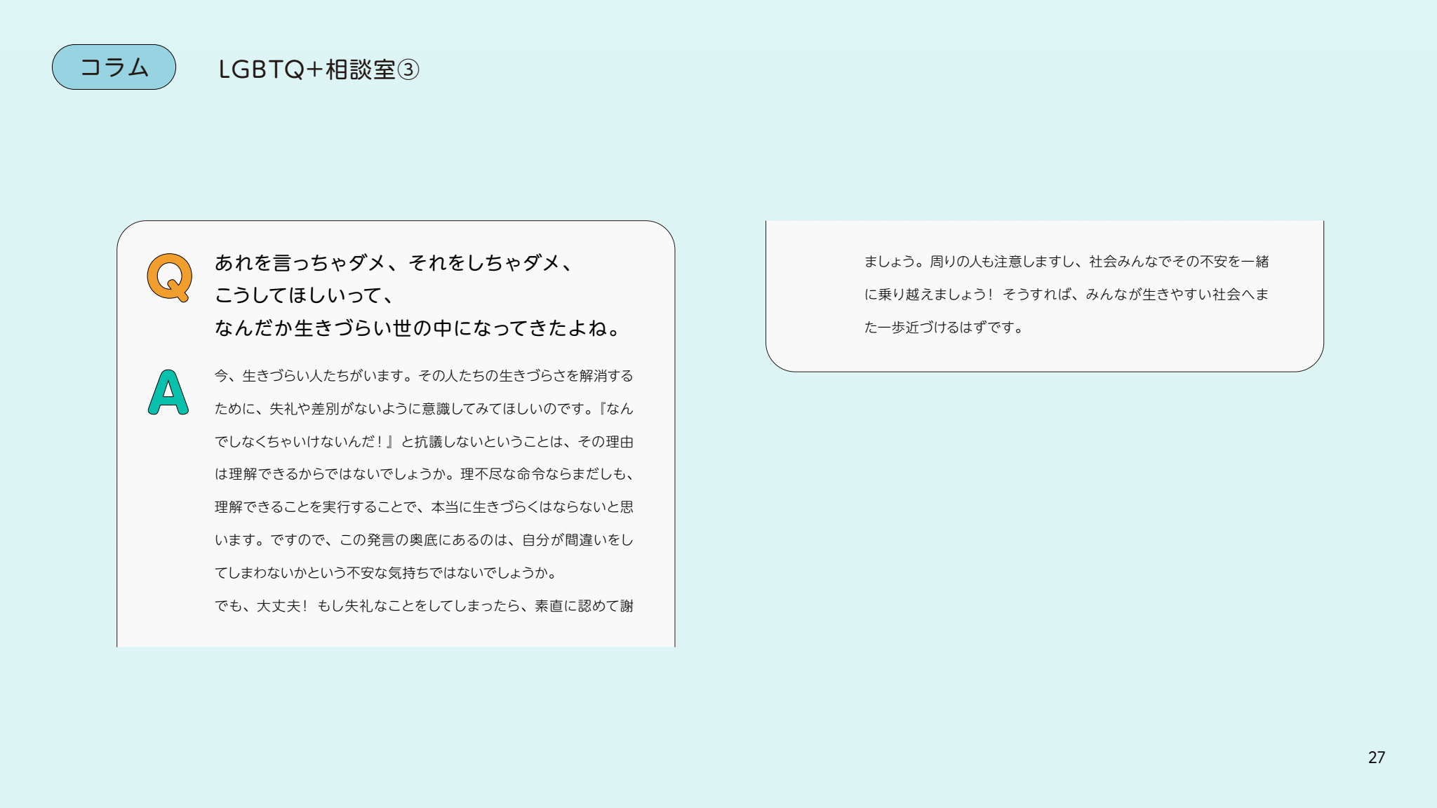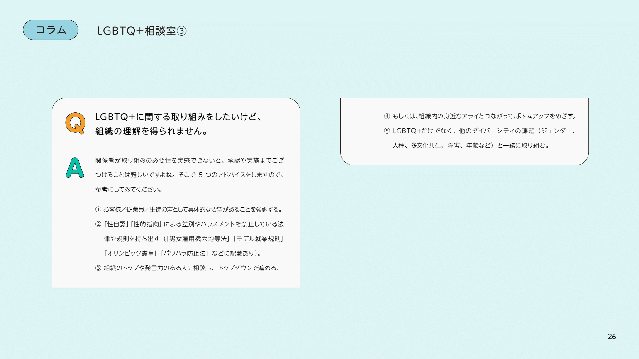 社会で、会社で、学校で。誰もが「DEI」や「多様性」と言うけれど、いざ自分がLGBTQ+について何かを尋ねられたら、言葉に詰まってしまう。あるいは、暮らしの中で「正解」がわからず、戸惑って、なかなか一歩を踏み出せない。