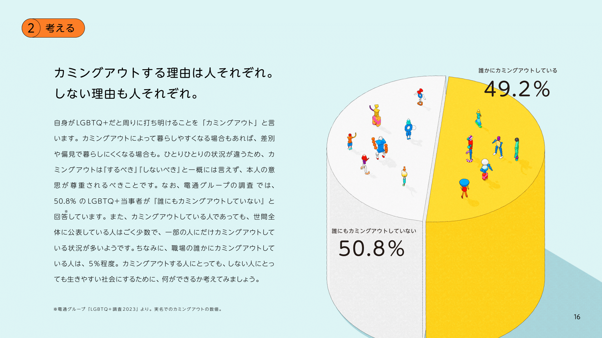 カミングアウトして生きる人もいれば、しない人もいる。したくても、できない人もいる。したくなくても、せざるを得なかった人もいる。助けを求めたい人もいれば、放っておいてほしい人もいる。そして同じ人が、昨日と今日でまったく違う気持ちや状況を抱えることもある。