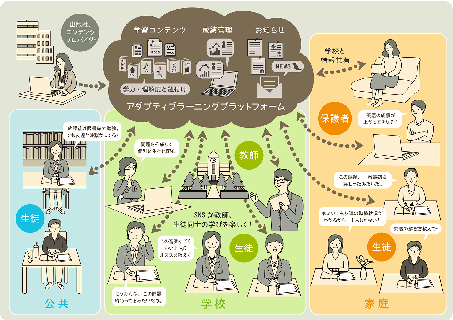 あらゆる場所からさまざまなデジタル教材コンテンツにアクセスでき、個別最適化された学びを実現するエコシステム