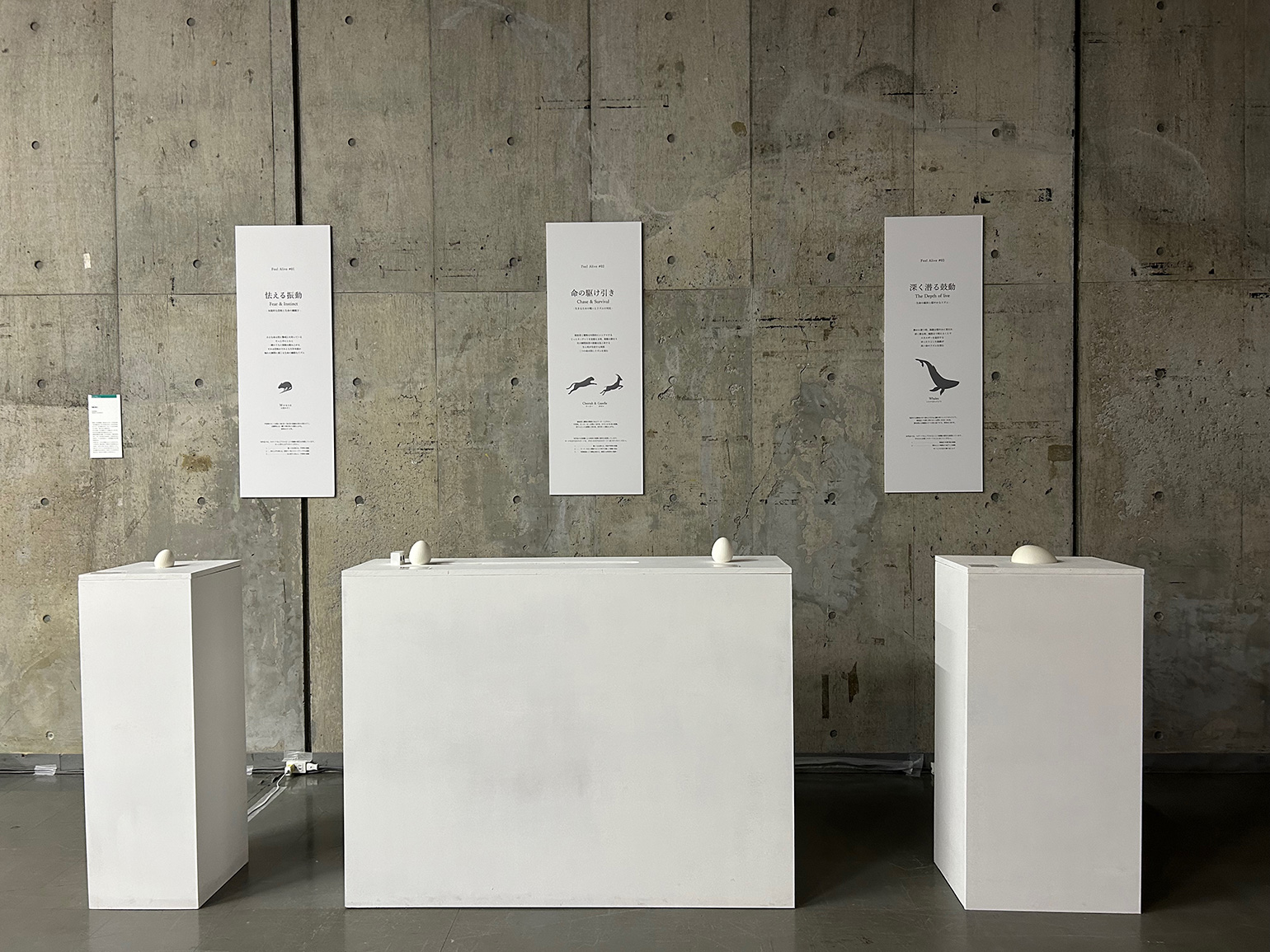 実際に学び始めて衝撃を受けたのは、全学科共通の「造形基礎」という授業でした。その授業では、教室の中央に白い物体がいくつも置かれ、それを15人ほどで囲み、一人ずつ手に取って感じたことを一言で表現します。重い、冷たい、ざらざらしている、柔らかい。同じ物体でも、出てくる言葉は驚くほど多様でした。