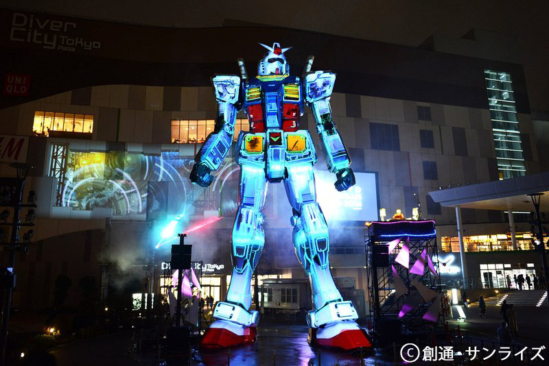 「TOKYOガンダムプロジェクト 2014」実行委員会(東京港埠頭、東京都造園緑化業協会、東京臨海ホールディングスなど)は3月20日、江東区のダイバーシティ東京 プラザ フェスティバル広場及びシンボルプロムナード公園で、「TOKYOガンダムプロジェクト 2014 ガンダムプロジェクションマッピング “Industrial Revolution” –to the future」を開催した。同広場に設置されている18メートルの実物大ガンダム立像で3Dプロジェクションマッピングを実施するもので、今回が初めての試みとなった。