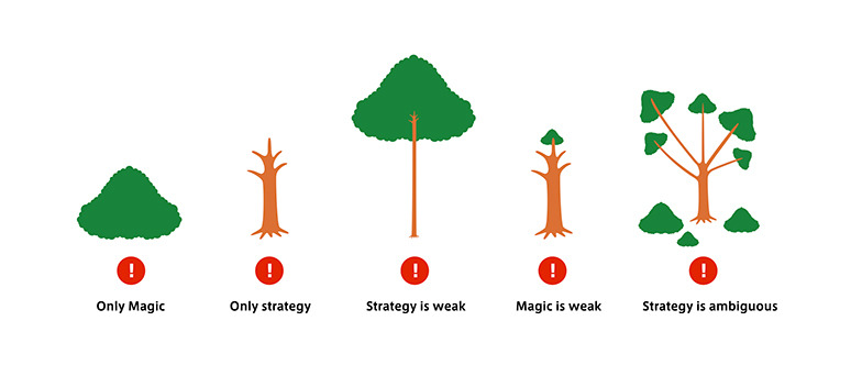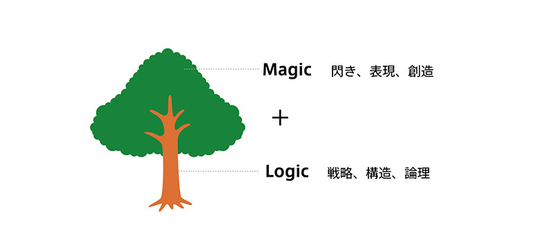 Shimizu: My ideal structure is similar. If one project is a tree, Logic (strategy) is the trunk, and Magic (expression) is the leaves. Typically, clients or strategists build the tree, while production teams or designers create the leaves. As a designer myself, I spent three years solely making leaves. I got fast and good at it, but I felt so many creations lacked integration between the tree and the leaves.