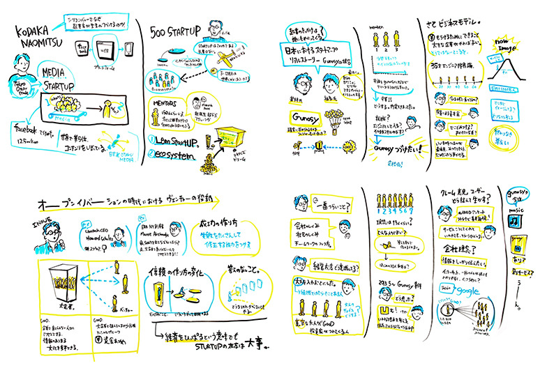 Yoshida: It's paradoxical, but the recent proliferation of methods like Lean Startup and Rapid Prototyping—where you share the process itself—reflects that the value society now demands from planning and creation can no longer be achieved by endlessly cycling through traditional molds. You, Mr. Shimizu, take a spear called Graphic Recording and thrust it into various places. Next time, please tell us more specifically about that strategy. (To be continued)