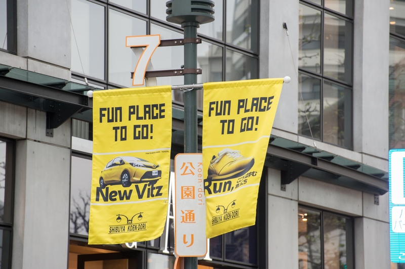 In front of Shibuya PARCO PART 1, a talk show featuring the guests was held. A giant "Yellow SneaCar" (Sneaker), embodying the "yellow sneakers = yellow new Vitz" concept alongside the Vitz, was also unveiled. Dandy, wearing his signature yellow outfit, said, "I want to take my kids to the sea and mountains," while Nakamura stated, "I want to go to the safari park with light footwork." Since the car is sold at NETZ dealerships, they both struck a pose declaring, "Get the Vitz at NETZ!" Flags promoting the car were displayed along Shibuya's main street, and vehicle exhibits were held at SHIBUYA109, turning the city yellow.