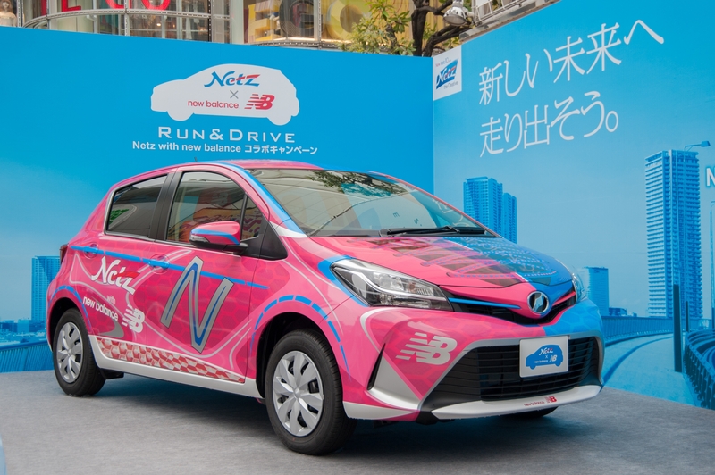 Aiming to support all runners and drivers, Netz dealerships launched the "RUN&DRIVE Netz with new balance Collaboration Campaign" starting the same day. They created original collaboration shoes featuring the sneaker brand New Balance and Netz colors. This limited model is only available through the campaign at Netz dealerships nationwide. Furthermore, an original collaboration Vitz car, inspired by these shoes, was created and displayed at Spainzaka Plaza on the day.