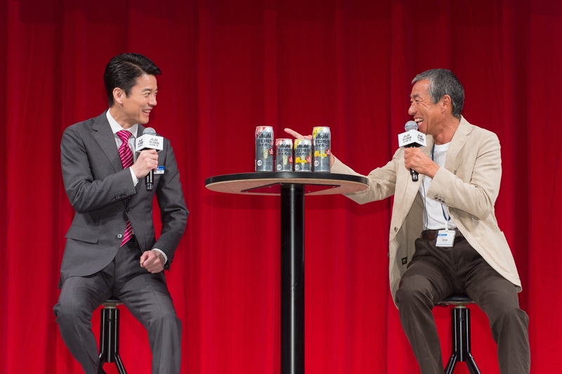 Appearing in the same outfits as the commercial, the two actors delivered a well-synchronized talk. Yanagiya displayed their closeness, saying things like, "I think we're a golden duo." During the talk, they energized the venue with responses incorporating the product's features, such as "It's spicy, isn't it~" and "It's sharp and crisp!" They then performed a ceremonial opening of a giant can to commemorate the launch. President Koji Akiyoshi, who rushed to the venue, stated, "Pre-orders have far exceeded our targets. Sales are likely to surge further thanks to the commercial's impact." He revealed the second installment of the commercial will air in July. The product website ( asahibeer.co.jp/shochu-high/ ) also features the commercial and behind-the-scenes footage.