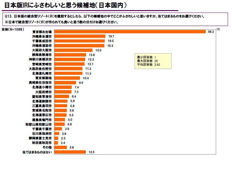 ⑧ The top candidate location deemed suitable for a Japanese-style IR by domestic residents is "Tokyo's Odaiba area."