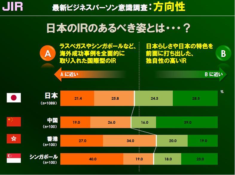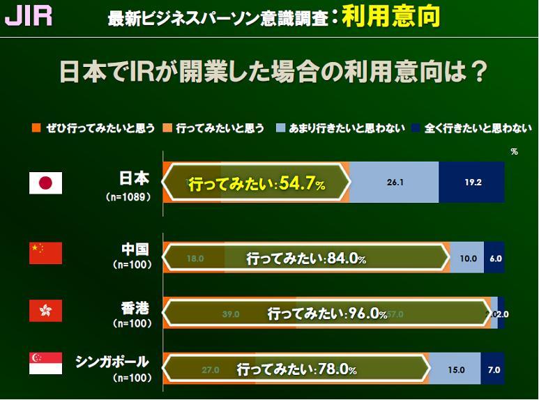 There is also strong international demand for IR introduction in Japan. Conditional support after IR explanation was 96.0% in Hong Kong, 92.0% in China, and 85.0% in Singapore.