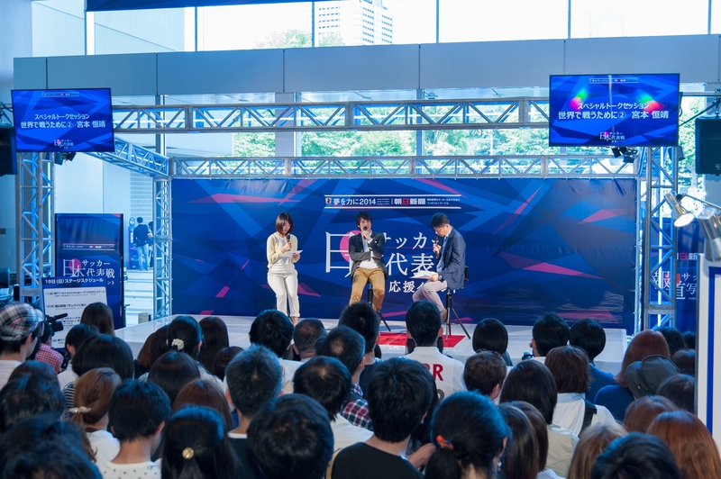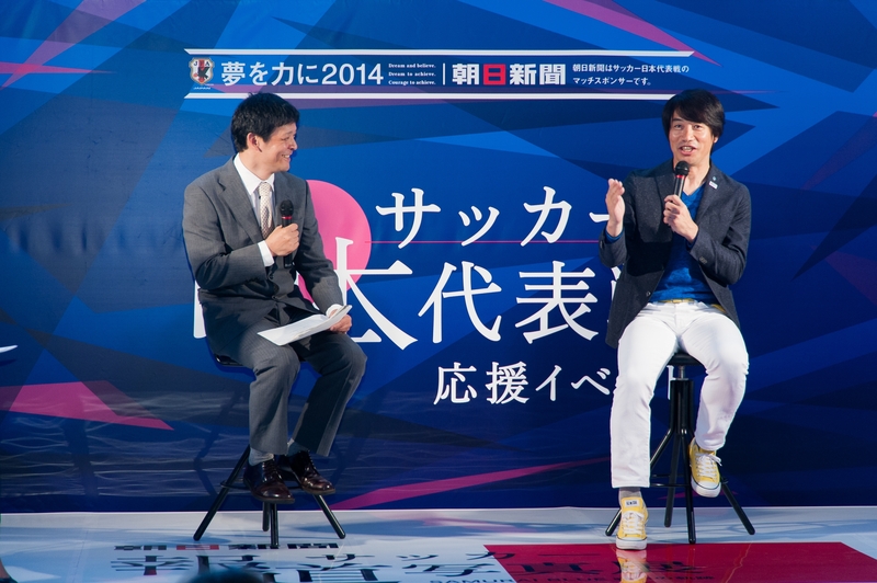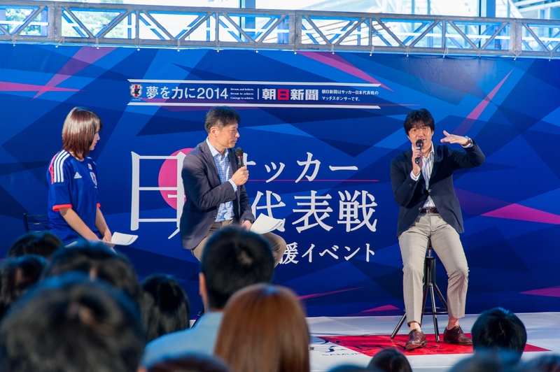 Asahi Shimbun, the match sponsor for the Japan National Soccer Team, held the "Dreams into Power 2014 Japan National Soccer Team Support Event" (Supported by: Japan Football Association (JFA) / Special Sponsor: Audi Japan / Sponsors: Adidas Japan, Konami Digital Entertainment) at Roppongi Midtown in Minato Ward, Tokyo, from May 16th to 18th. Former Japan National Team players and coaches participated in talk sessions. A concurrent "Soccer Photo Exhibition" traced the Japanese team's journey from the "Tragedy of Doha" to qualifying for the Brazil World Cup.