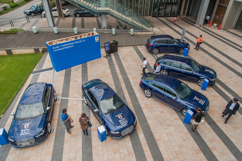 Audi Japan displayed 11 special edition models, including the TT Coupe, S5, and S6, painted in SAMURAI BLUE (Japan National Team) colors as part of the "Audi × SAMURAI BLUE 11 Limited Edition" series throughout Midtown. Konami Digital Entertainment set up a game experience corner for its new title "World Soccer Winning Eleven 2014: The Challenge of the Blue Samurai" in its showroom at the same location. Both companies, as supporting companies of the Japanese national team, helped build excitement for the team. The venue was bustling with many visitors, with the highly detailed mannequin of Coach Zaccheroni on display becoming a hot topic.