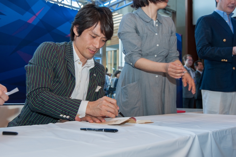 Former national team player Hiroshi Nanami took the stage for the talk session on the 17th. Sharing his perspective as a soccer fan, he said, "Kagawa is the key man in attack. Finishing second in the group stage would make the first knockout match against Italy an interesting matchup." Afterwards, Mr. Nanami and attendees participated in the "adidas Circle Project." This initiative involves forming a circle to cheer for the national team; participants linked arms and shouted "Form a circle, Japan!" to send their support. Additionally, the "adidas Giant Jersey Caravan" took place on the lawn plaza. Supporters wrote passionate messages of support for the team on a giant jersey. The Giant Jersey will be unveiled at the "Kirin Challenge Cup Japan vs. Cyprus" match on May 27. On the final day's stage, former national team player Tsuneyasu Miyamoto appeared, sharing insights based on his experience about mindset and preparation. His prediction for the group stage results—1 win, 2 draws—matched Mr. Nanami's, prompting laughter as he joked, "We didn't coordinate beforehand!"
