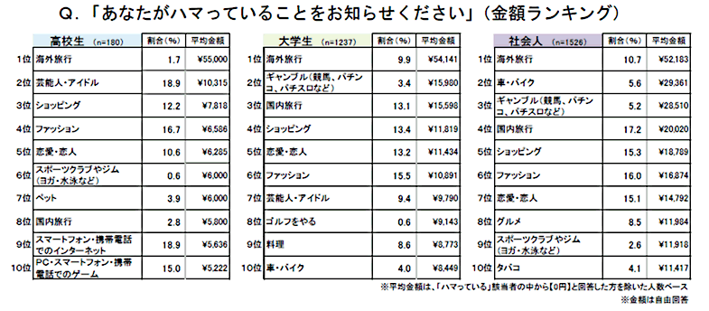 Furthermore, as shown in the spending ranking below, some hobbies have fewer participants but involve "high per-person spending." We found that people enjoy their hobbies with a sense of balance, switching between "high-value spending" on things they deem worthwhile and "low-cost compromises."