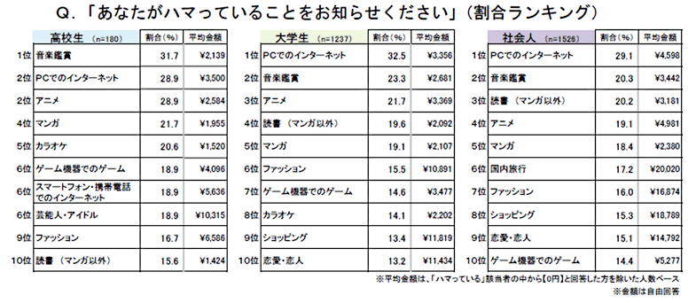 When we asked a self-proclaimed otaku college student who loves both manga and anime, he said, "I buy DVDs of anime I like. I also like games, but I stick to free ones." Like him, many seem to balance their spending through "low-cost compromises" – free or inexpensive activities.