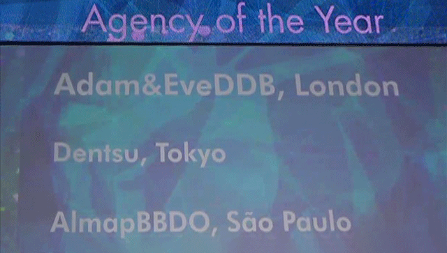Dentsu Inc. was honored as the runner-up for Agency of the Year at the Cannes Lions International Festival of Creativity, an award determined by total wins throughout the festival. First place went to Adam & Eve DDB, which won four Grand Prix awards for "Sorry I Spent it on Myself."