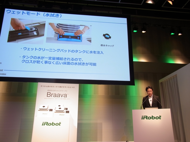 Sales on Demand held a new product launch event on July 1st at Omotesando Hills in Shibuya, Tokyo, ahead of the release of the "Braava 380j," iRobot's second product for the Japanese market following the "Roomba" robotic vacuum cleaner. The Braava has been released sequentially in Europe and the US since August last year and is already sold in approximately 30 countries worldwide. In Japan, it will be sold at the iRobot Store ( http://store.irobot-jp.com/) starting July 4th for the time being. It is a robot that can automatically clean hardwood and tile floors, choosing between two modes: wet mopping and dry mopping.