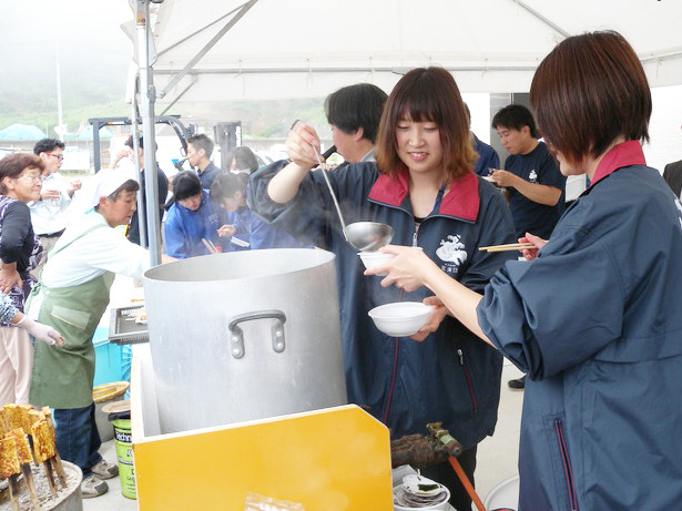 Following the ceremony, the event "Noda Village: Food Assets That Bring Smiles" was held as an opportunity to view locally produced ingredients as culinary "assets" that generate many smiles. Dishes featuring local ingredients such as Araumi scallops, wakame seaweed, and tofu were served. Guests and participating children and students enjoyed various local flavors, including freshly grilled scallops, scallop soup, and tofu dishes.