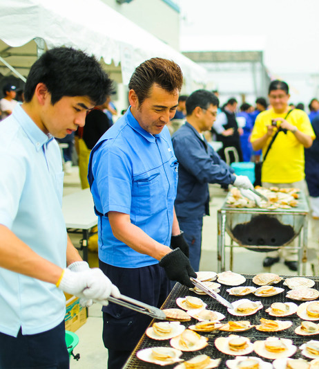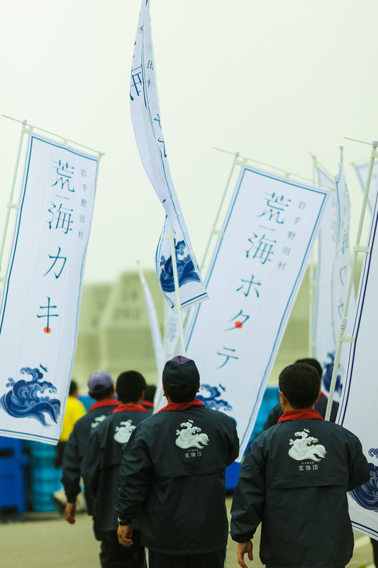 The village's fishing industry suffered devastating damage in the Great East Japan Earthquake, but production facilities have gradually been restored. Ahead of the full-scale shipment of scallops, the Noda Village Fisheries Cooperative, Noda Gyoyu Association, Nodamura Co., Ltd., and Noda Village Office spearheaded the launch of the "Aramai-dan Project." Named for the local fishermen's dedication to fishing in the village's rough seas without yielding to harsh conditions, the formation of the "Iwate Noda Village Rough Seas Group" coincided with the launch of the "Iwate Noda Village Rough Seas Scallops" brand. This initiative aims to promote the deliciousness and value of the village's seafood products.