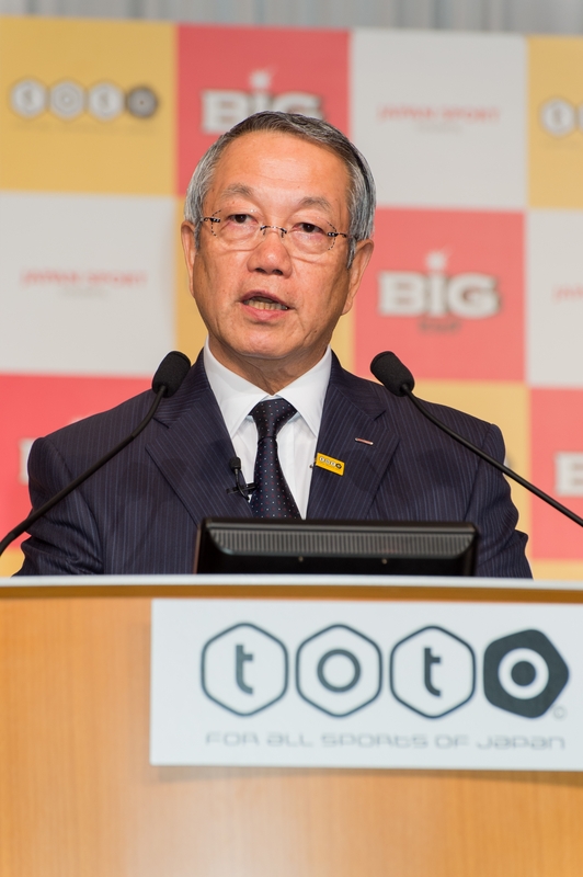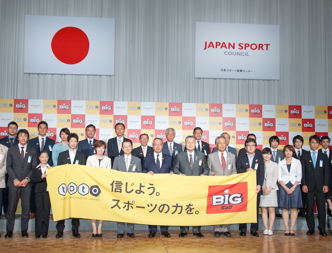 Chairman Ichiro Kono explained that the 2014 fiscal year grants are expected to total approximately ¥17.7 billion and that sales for the "World Cup toto" lottery targeting the 2014 FIFA World Cup Brazil reached about ¥5.9 billion. He stated, "Through sports, we aim to build a Japan where children and young people can have dreams."