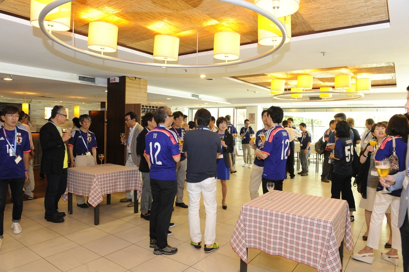 On June 19, the day of SAMURAI BLUE's (Japan National Team) second match against Greece, a 'Dentsu Inc. Luncheon' was held at a hotel in Natal, the match venue. Approximately 100 people attended, including representatives from the JFA (Japan Football Association) and sponsors of the Japan National Team, to wish the team well. It served as a networking event where attendees enjoyed food and live band performances.