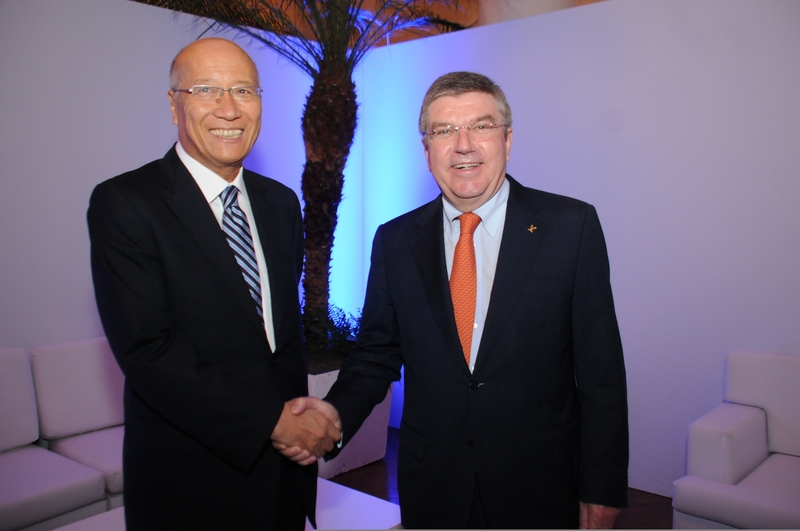 The party venue welcomed numerous guests from the world of soccer and sports, including FIFA President Joseph Blatter and IOC (International Olympic Committee) President Thomas Bach. They were warmly received by Dentsu Inc. President Nao Ishii and Senior Managing Director Yuzuru Kato. Amid live bossa nova music, guests enjoyed sushi and other dishes, fostering friendly connections in a relaxed atmosphere.