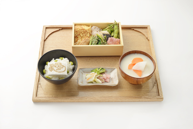 The Japanese restaurant "Kyoto Ishibei Koji Mamecha" offers original Mame Shiba menu items.
