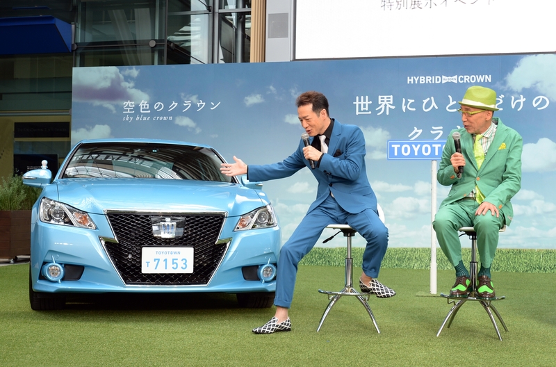 Talent guest Terry Ito andsinger Toshihiko Tahara appeared at the venue. Wearing suits matching the car colors, they immediately unveiled the two Crowns featured in the commercial.