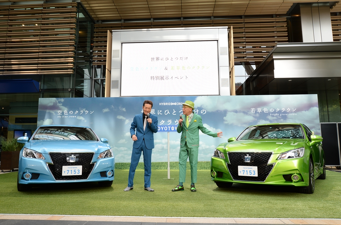 Toyota Motor Corporation began airing the " Sky Blue Crown"and "Lime Green Crown" TV commercials on July 30th, following the "His Crown Sometimes" edition. The day before, on the 29th, a special exhibition event featuring the Crown appearing in the commercials was held at Tokyo Midtown in Minato Ward.