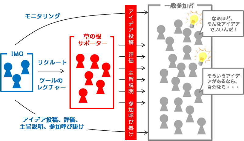 An effective approach for challenging themes like tacit knowledge is to form "grassroots supporters" who understand the theme's essence beforehand and take the lead when the ideation activity begins. Specifically, the Innovation Management Office (IMO) selects volunteers from each business domain or region before the ideation starts. These supporters are trained in advance on how to use innovation management tools and submit ideas, then act as role models for the ideation activity. Additionally, by actively encouraging them to evaluate and comment on others' ideas, they can organically ignite the creative spark within the initiative.