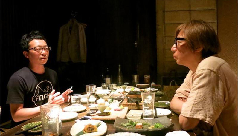 Hello, I'm Keita Kusaka from the Kansai Branch Creative Planning Bureau (hereafter, Kansai Crea). Starting this issue, I'll be leading "Kansai Crea News." I'll be sharing the appeal and the absurdity of Kansai Crea via Web Dentsu News. For the first installment, we're diving straight into VIP territory! A conversation between Shiriagari Kotobuki and Kansai Crea's Creative Director Masayuki Furukawa. The conversation ranges from how they met, their respective work, to discussions on expression—what is surreal? What is nonsense? Initially, we planned to hold the interview in some conference room, but decided that rambling over drinks would be more "authentic." So, we talked for four hours at an izakaya in Shibuya. It was fun, but transcribing it was a nightmare, right? Let's condense the best bits and dive right in. Here we go.