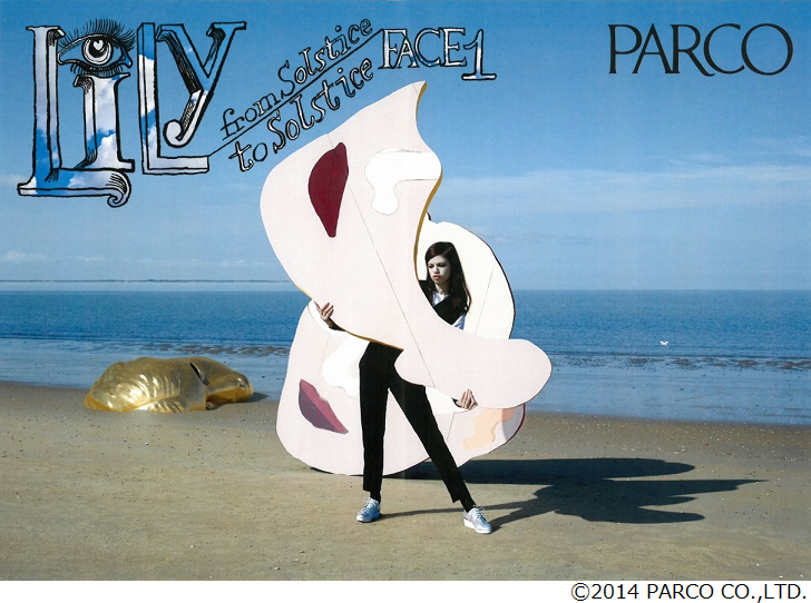 The photographer for the advertising work "Lily, from Solstice to Solstice" is Viviane Sassen, with Lily McMenamy as the model. It was shot on the coast of the Netherlands. The interplay between Lily and the face-shaped object placed on the seashore, along with the Golden Head—a symbol of beauty—expresses the continuity of a year's time and the concept of following the changing seasons, visually conveying the enduring nature of fashion with impact. Through its advertising, PARCO emphasizes the importance of experiencing the seasons and the beauty of fashion. "Lily, from Solstice to Solstice" conveys the meaning: "Now, to the other side, beyond."