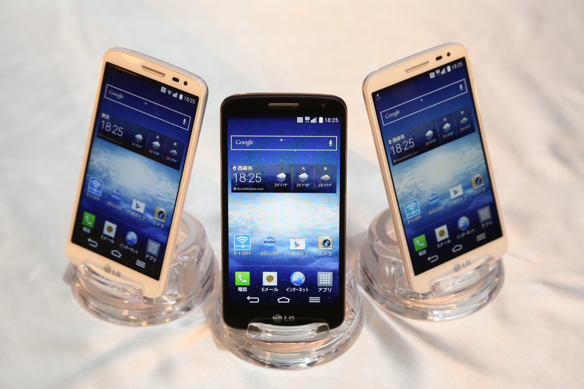 "Uresuma" is a service combining a "BIGLOBE LTE・3G" SIM card (using NTT Docomo's network) with the LG Electronics smartphone "LG G2 mini for BIGLOBE," offered at a low price point.