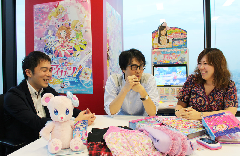"Aikatsu!" pursues an extreme sense of realism to appeal to lower elementary school students. Following our previous interview, we spoke again with Mr. Tsuyoshi Hirose of Bandai, who oversees the Aikatsu! card game; Ms. Kayoko Hashimoto of Bandai, who handles merchandise development; and Mr. Takanori Ito of Sunrise, the anime's producer, about initiatives to expand the Aikatsu! world and future developments.