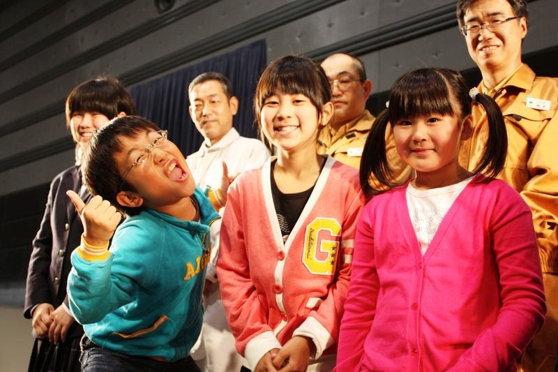 Mayor Shinagawa of Koriyama City stated his resolve: "We received messages from seven children and seven samurai. The administration will not betray that expectation and will make every effort." Director Sekiya of the Fukushima Environmental Restoration Office, Ministry of the Environment, touched on the current state of decontamination and said, "Today was an extremely valuable opportunity. I felt the messages were also a call to action for the national and municipal governments. We want to respond to that." All 864 messages from the children were displayed on a back panel. Plans are underway to turn them into stickers for distribution to workers across the prefecture, who will affix them to their helmets.
