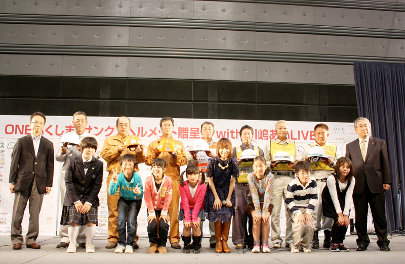 "ONE Fukushima," aiming for Fukushima's revitalization (Participating Companies = Fukushima Minpo, Fukushima Minyu Shimbun, Fukushima Television, Fukushima Central Television, Fukushima Broadcasting, TVU Fukushima, Radio Fukushima, Fukushima FM; Secretariat = Dentsu Inc., Dentsu East Japan Inc.) held the "Thanks Helmet Presentation Ceremony with Ai Kawashima LIVE" (Organizer = ONE Fukushima, Production = Fukushima FM, Cooperation = Ministry of the Environment) at Big Palette Fukushima in Koriyama City, Fukushima Prefecture, on October 12.
