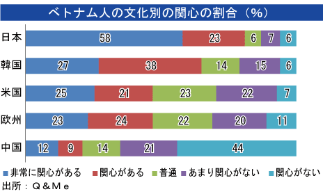 A survey by Asia Plus's market research service "Q&Me" revealed that Vietnamese people have a particularly high level of interest in Japanese culture.
