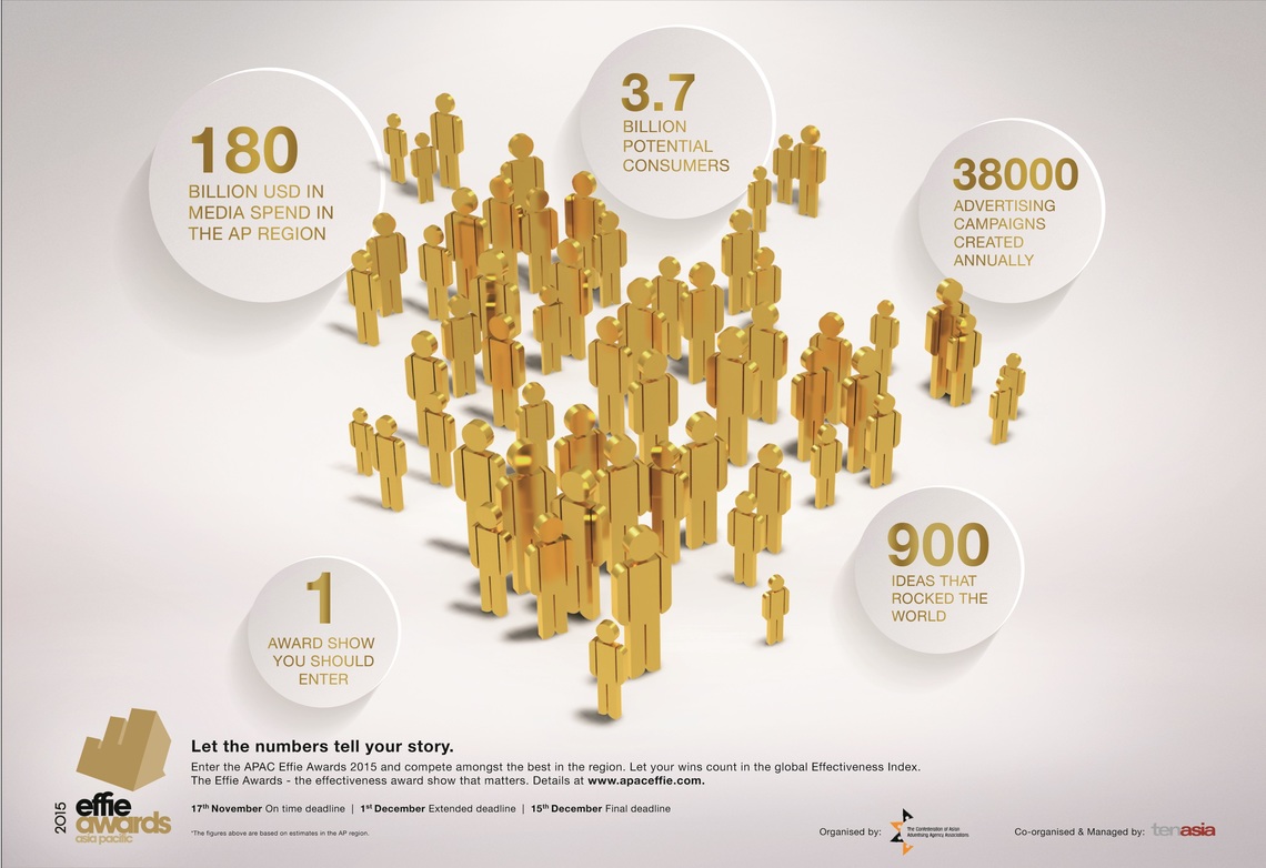 This year's theme is "Let the Numbers Tell Your Story." Entries (for campaigns implemented between July 2013 and September 2014) are being accepted across 34 single-market categories and two multi-market categories. The final deadline is December 15. Entries can be submitted at http://www.apaceffie.comを参照.