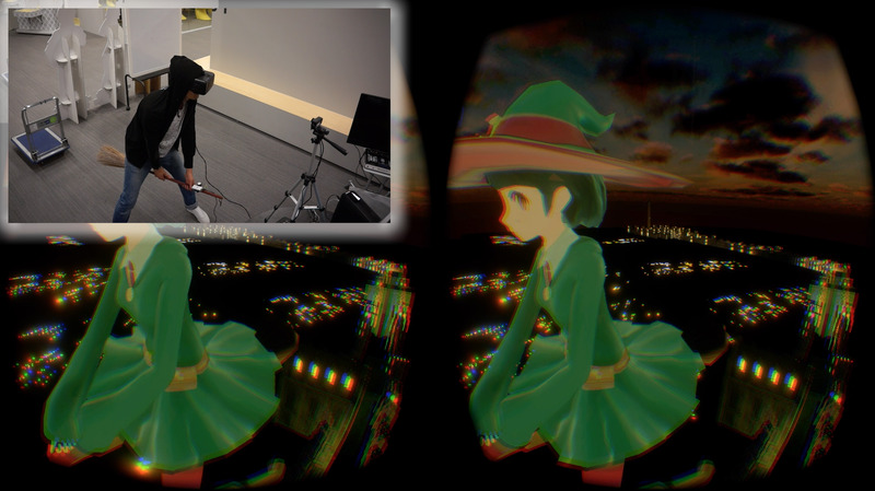 There are also experiences where you control the action yourself, allowing you to freely fly around the world. In "Little Witch Pie Delivery," you ride a broomstick and control it up, down, left, and right to fly freely through the sky. It's strange how, even though your feet are on the floor, it feels as if you're truly floating.
