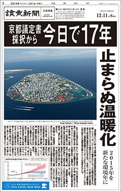 The front-page headline reads: "17 Years Since the Kyoto Protocol Adoption." The coverage consists of articles sounding the alarm on global warming, which shows no sign of stopping.