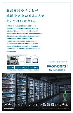 The final page features an advertisement by Panasonic, a sponsor of the project. Its tagline reads, "Cooling food should not mean warming the planet," introducing the company's non-fluorinated refrigeration system.