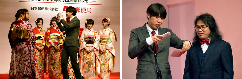 The year-end tradition of accepting New Year's cards began on December 15th. A ceremony marking the start of accepting 2015 New Year's cards was held at JP Tower in Marunouchi, Tokyo.