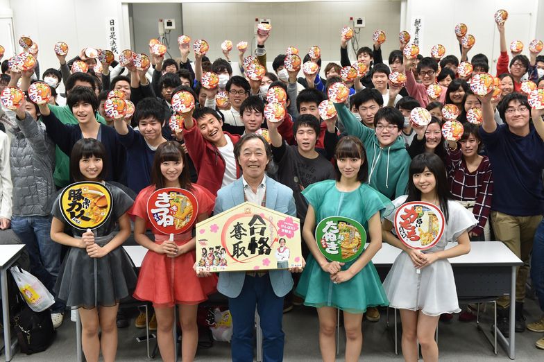 After the lecture, the idol group Akamaru Dash☆, produced by Takeda and co-starring in the commercials, rushed to offer support and performed a prayer for exam success using original ema votive tablets.
