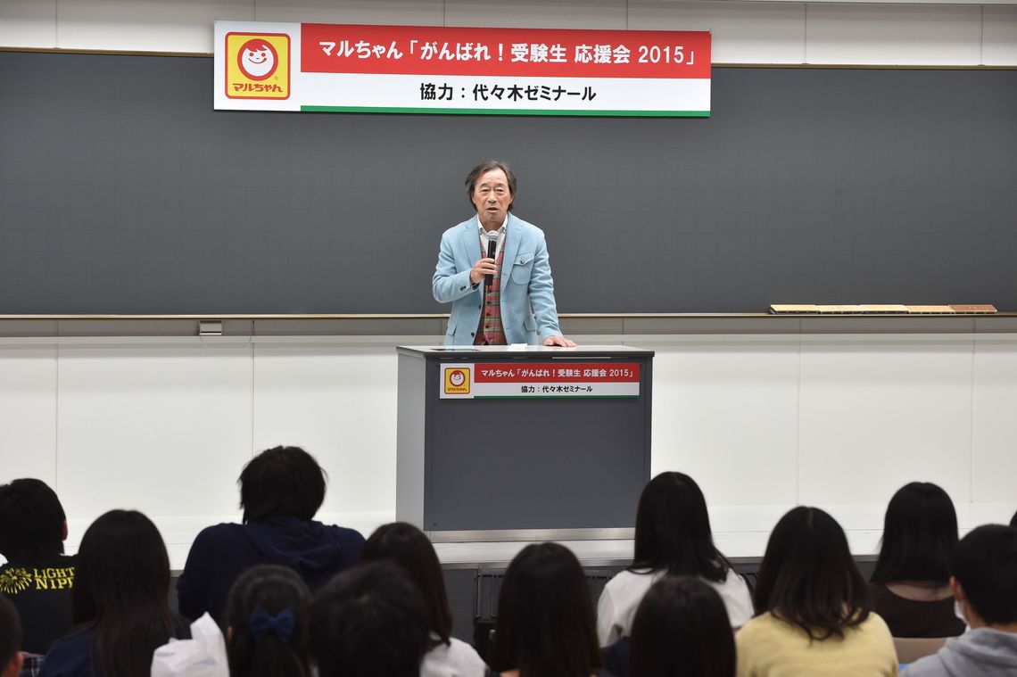 Toyo Suisan held its exam-taker support event, Maruchan "Hang in There! Exam-Taker Support Meeting 2015," on Thursday, January 8th, at the Yoyogi Seminar Tower, with the cooperation of Yoyogi Seminar. This event, held annually since 2008 out of a desire to support exam-takers studying under daily pressure, marked its seventh iteration this year.