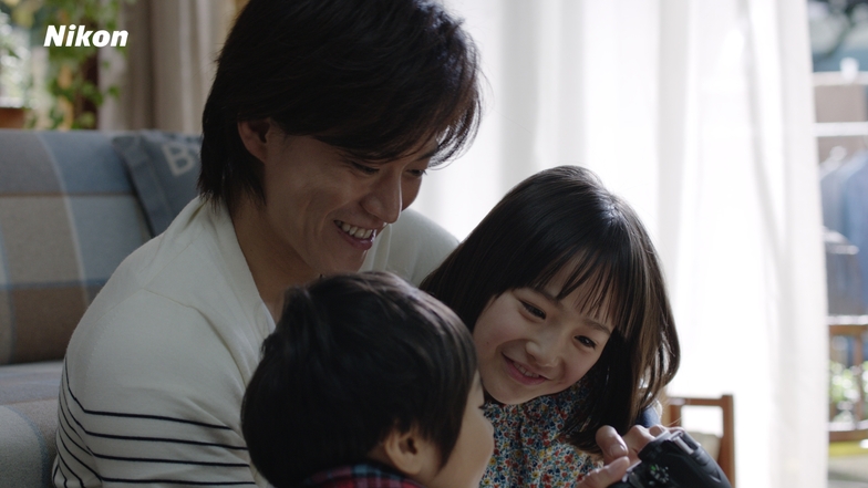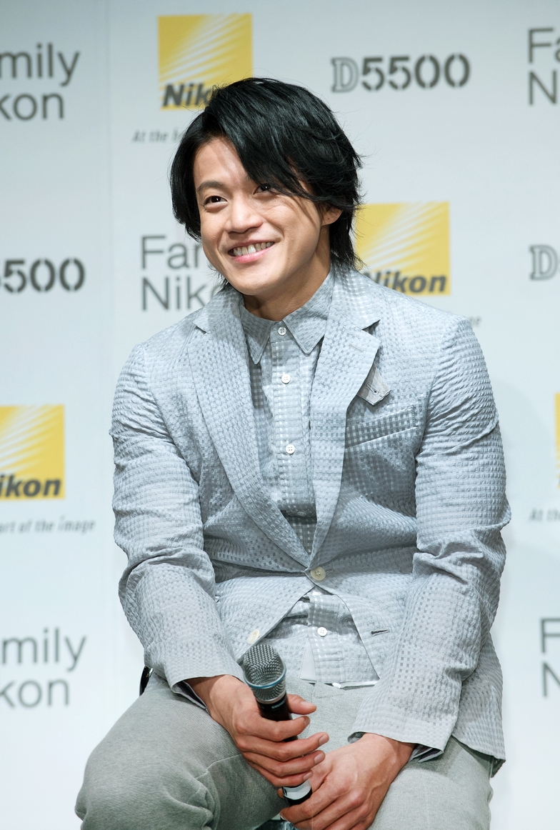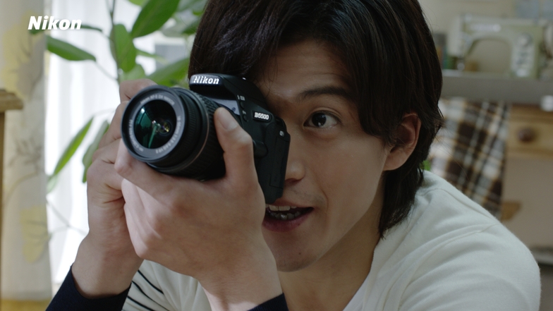 Oguri shared, "I'd been wanting to do a camera commercial, so I was thrilled when my favorite brand, Nikon, approached me." He admitted the shoot was a bit challenging due to the children being "too free-spirited." He also expressed his fondness for the camera, saying, "It's very easy to use and I got the hang of it right away. The touch panel is convenient and perfect for family photos." As a camera enthusiast and now a father in real life, Oguri showed private photos, including one of his daughter holding his hand. "The D5500 fits perfectly in my hand, so I can use it while playing with my child. It looks like fun to take pictures of each other," he said, showing his doting nature. "I want to take lots of pictures of my child and keep them for her."