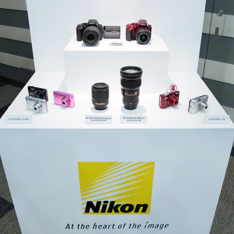The Touch & Try corner featured not only the D5500 but also the newly released digital cameras "COOLPIX S3700" and "COOLPIX L32," along with telephoto lenses.