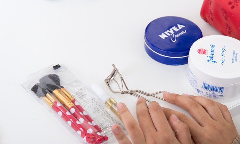 Today, we've asked all the high school girls to bring their makeup pouches. Can you tell us about your favorite items?