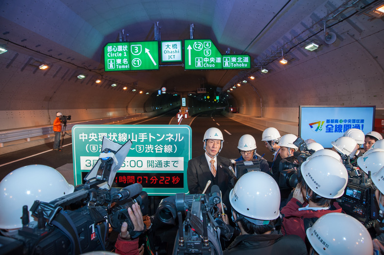On January 27th, the Metropolitan Expressway Corporation held a countdown ceremony at the Ohashi Junction of the Central Circular Shinagawa Line (connecting the Expressway Wangan Line to the Expressway No. 3 Shibuya Line), which opens on March 7th at 4:00 PM. This marked the first public unveiling of the underground branching and merging sections to the press.