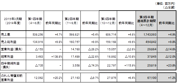 Dentsu Inc. announces results for the third quarter of the fiscal year ending March 2015.