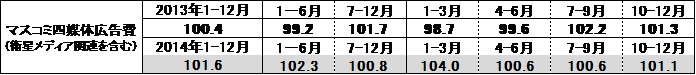 Looking at "advertising expenditures for the four major media" (including satellite media) by quarter, growth rates were somewhat weaker from April onward, but remained positive throughout the year.